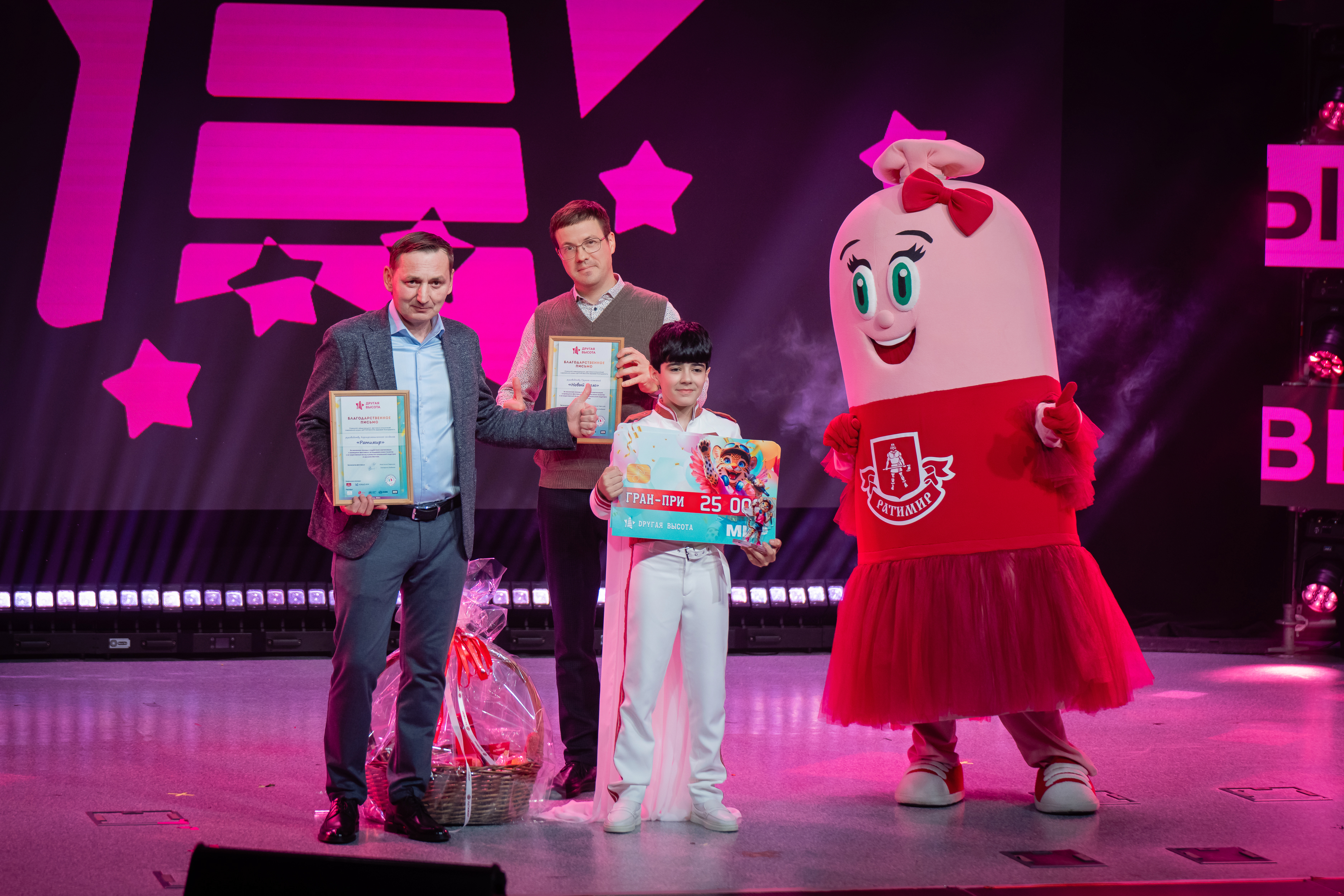 На гала-концерте наш генеральный директор Дмитрий Котов поздравил всех участников и вручил денежный сертификат и корзину нашей вкуснейшей продукции победителю Гран При!