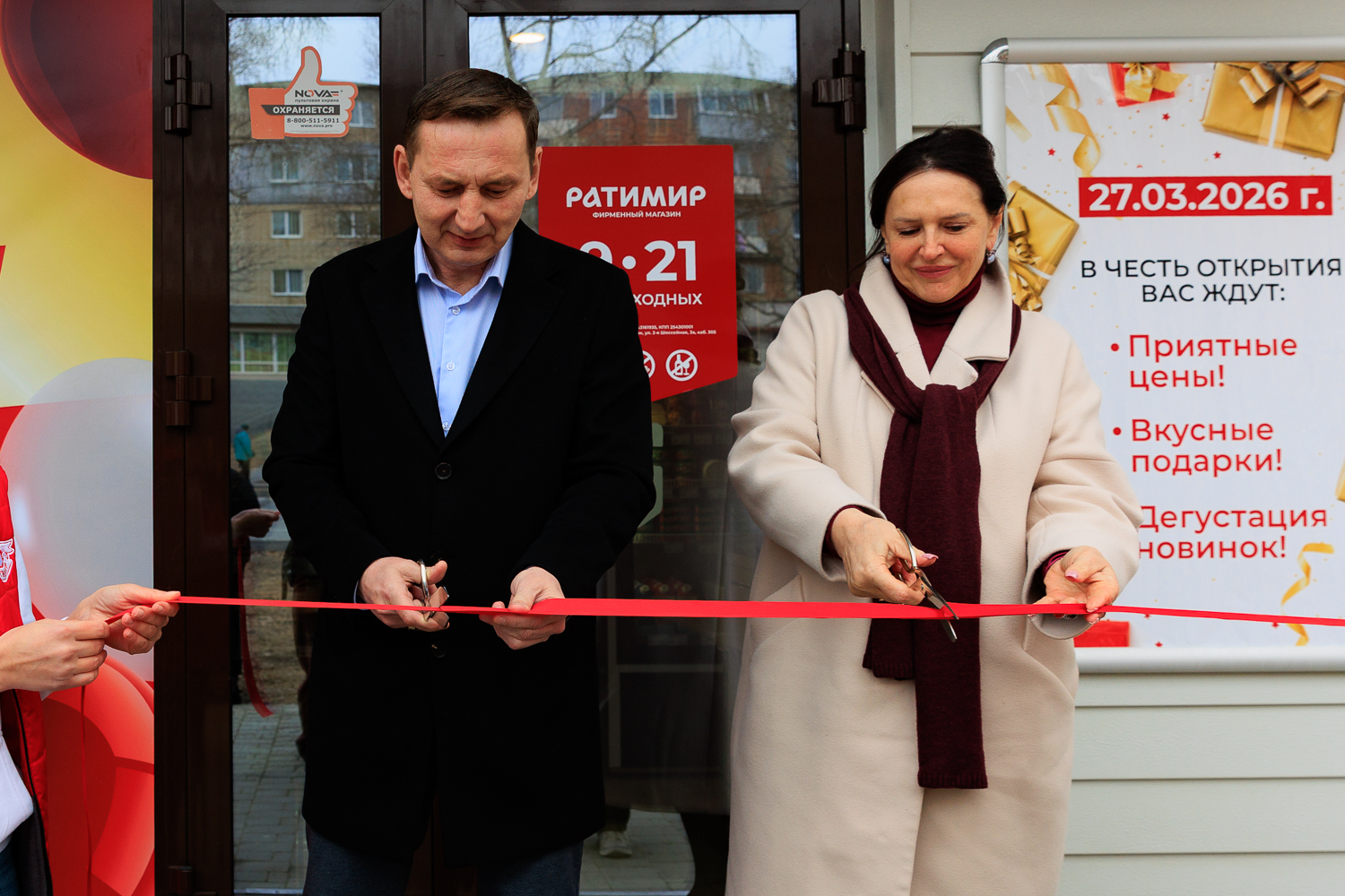 В церемонии открытия приняли участие генеральный директор компании Дмитрий Котов и директор сети фирменных магазинов Юлия Марченко. Под аплодисменты горожан они торжественно перерезали красные ленточки и распахнули двери новых торговых точек для покупателей.